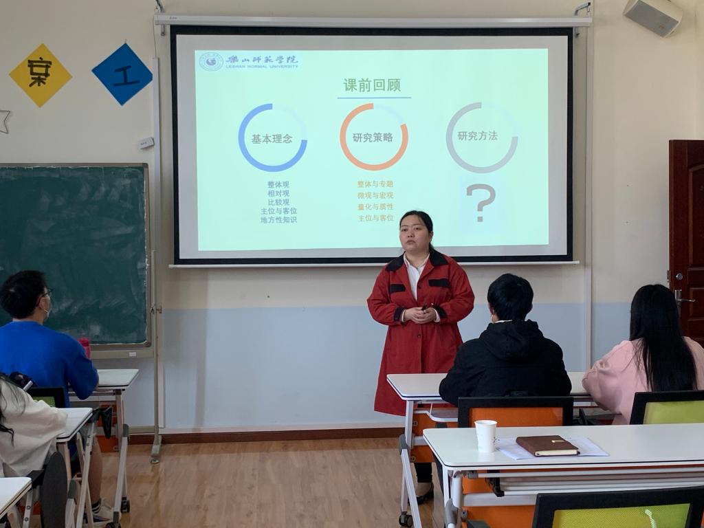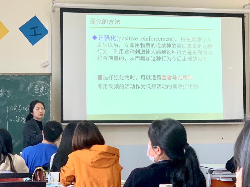 活动伊始,刘克稳副院长向大家简要介绍了举办本次比赛的背景及流程,表示本次比赛的主要目的是为加强教学实践研究并优化教学过程,给青年教师一个锻炼和展示的舞台,从而更好地促进青年教师的成长。首先,由社工系的张杰洁老师进行教学展示,围绕“文化人类学研究理念和方法”这一主题,张老师以“田野调查法”为中心,通过实例向大家分析讲解了具体的研究方法以及应该如何使用。与此同时,张洁老师也坚持以“学生为主体”的理念,通过互动的方式让同学们对教学内容有了更深刻的理解。讲课结束后,由肖勇教授对张洁老师的授课进行点评,他指出张洁老师的课件制作新颖形象、突出重点,能够让学生更易理解,并且也对教学的不足之处提出指导建议。随后,由公管系杨智慧老师围绕“强化改造理论”这一主题进行教学展示,杨老师为大家介绍了强化的四种方法,并通过手机互动的方式让大家更深刻的体会到同样的行为在不同的环境下会有不同的结果,让同学以完成检测题的方式对所学知识再次巩固。讲课结束后,龚卫东教授也对杨老师的授课进行点评,希望能够在加强与学生之间的互动并拓展其思维能力做改进。授课结束后,本着公平公正的原则,以学院教学指导委员会为主组成的评委们根据教学比赛评分标准进行评分。同时,党总支书记程勇对本次比赛做出总结,他表示青年教师要有新颖的教学方法和教学内容,希望通过这样一个平台,对学生充满信心,使学生更快更好成才。最后,全体人员进行合影留念。