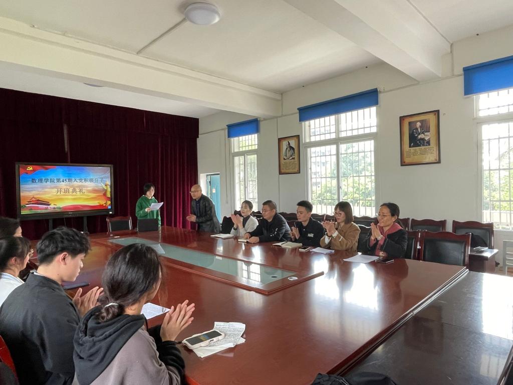 本网讯(文、图/曹琳、周诗贤)4月6日,数理学院在博雅楼二楼会议室举行了第45期入党积极分子培训班开班典礼。典礼采取线上线下结合的方式进行。出席本次开班典礼的有学院党委书记马力强、党委副书记左莉、学生科长陈盈舟、各学生党支部书记、学生党员代表以及85名入党积极分子。
