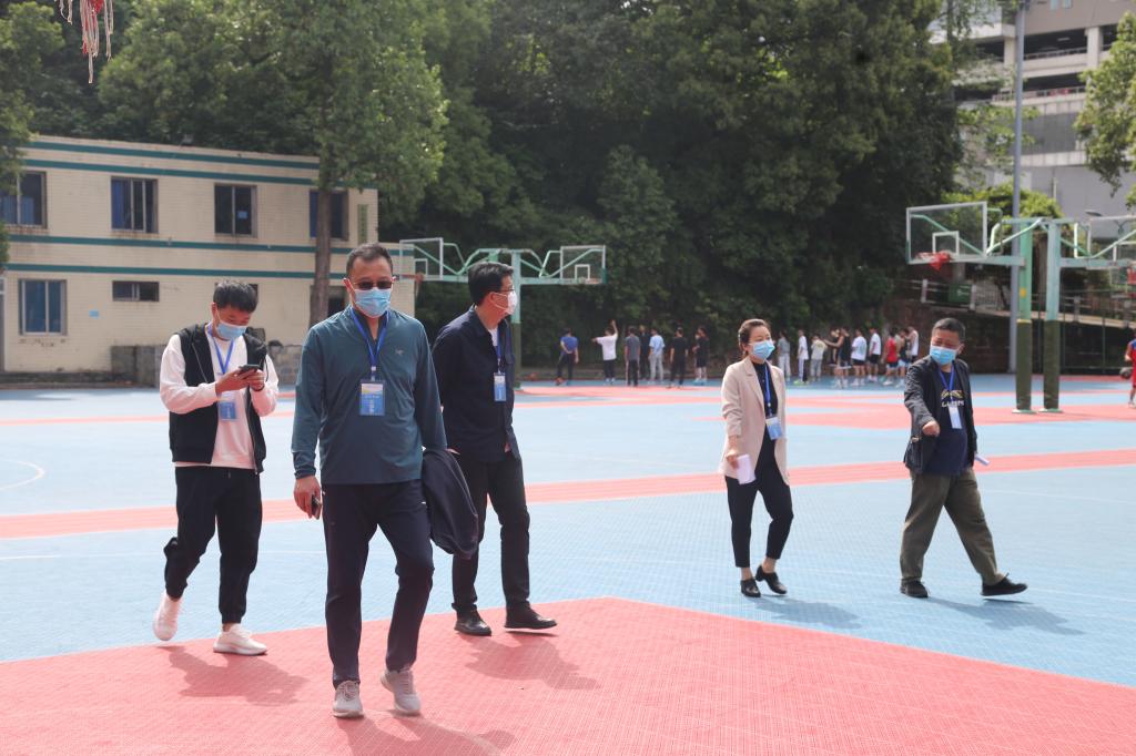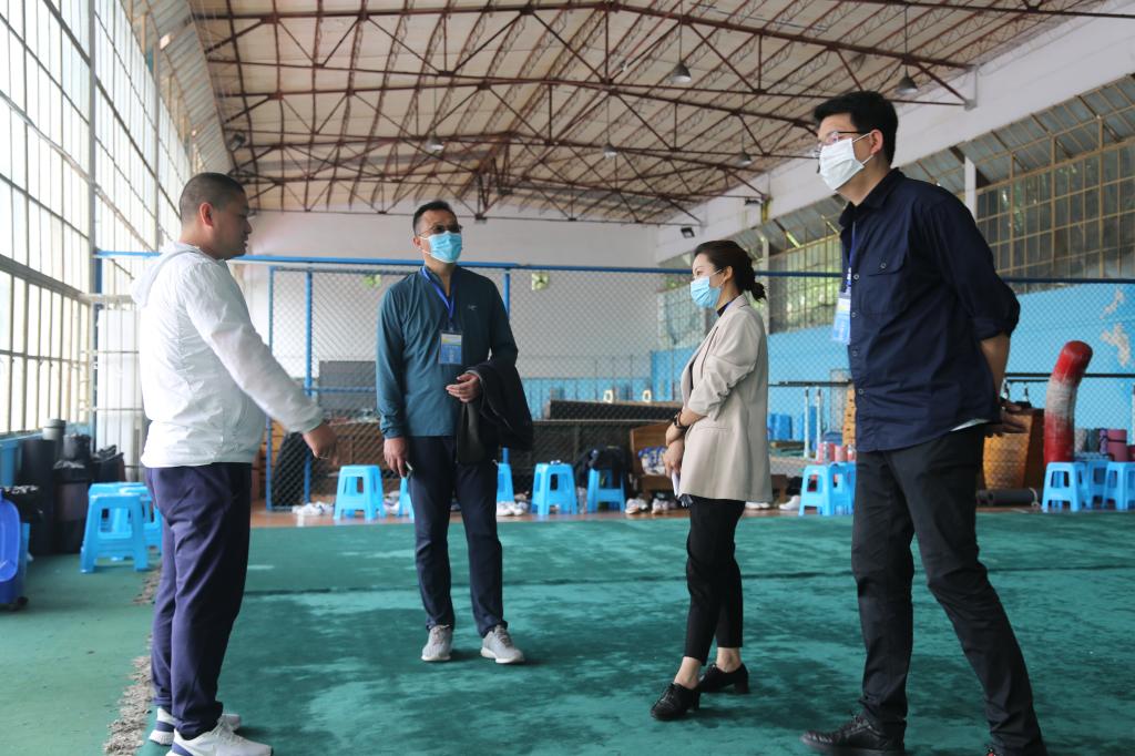 张峰一行分别到北校区田径场、南校区田径场、篮球场、武术馆等运动场地进行检查,察看了运动场所的疫情防控情况。