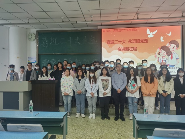 本网讯(文/刘丹,图/陈涛)为凝聚强大的青春力量,为实现中华民族伟大复兴的中国梦而努力奋斗,4月14日中午,由旅游学院分团委组织部主办,以“喜迎二十大永远跟党走奋进新征程”为主题的思政超市活动在行知楼314教室成功举行。本次活动由旅游学院分团委书记喻剑和相关学生干部担任评委。20级、21级各班学生代表共计8个组参加了比赛。