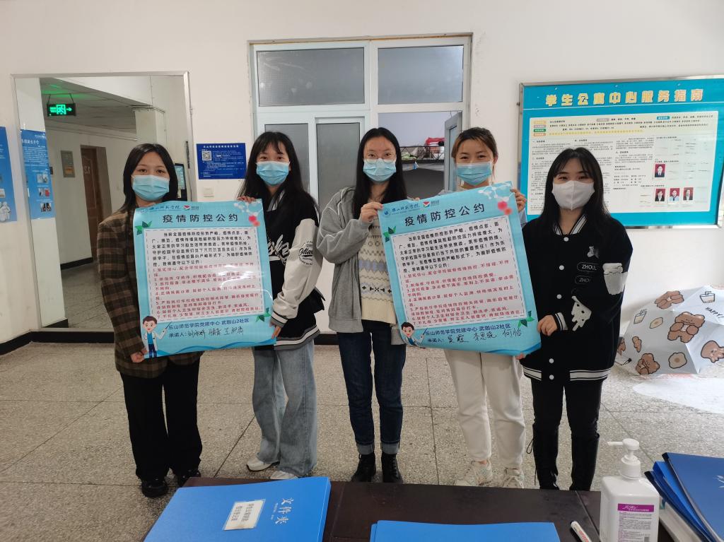 本网讯(文/郭元红、图/何叶)为进一步发挥学生党员在疫情防控工作中的先锋模范作用,增强大学生的疫情防控意识,维护校园卫生安全,4月8日-15日,武伽山二社区学生党员工作站对辖区内新一幢、新二幢、新三幢、新四幢学生宿舍楼进行疫情防控知识宣讲志愿服务活动。音乐学院辅导员郭元红、法学与公共管理学院辅导员何叶以及工作站学生党员参加了此次活动。
