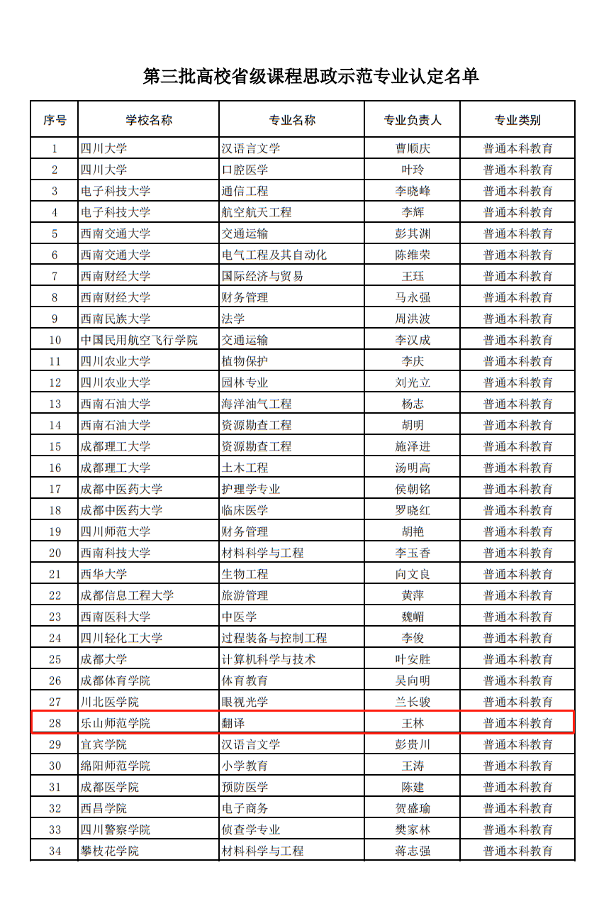 本网讯(文、图/王林)近日,四川省教育厅公布第三批高等卡塔尔世界杯决赛波胆预测 省级课程思政示范项目认定名单(川教函【2022】199号),全省共有41个普通本科专业获批省级课程思政示范专业,我校外国语学院翻译专业入选。这是继2016年英语专业获批四川省卓越教师培养计划和2019年英语专业获批四川省一流本科专业后外国语学院在专业建设上的又一次突破。