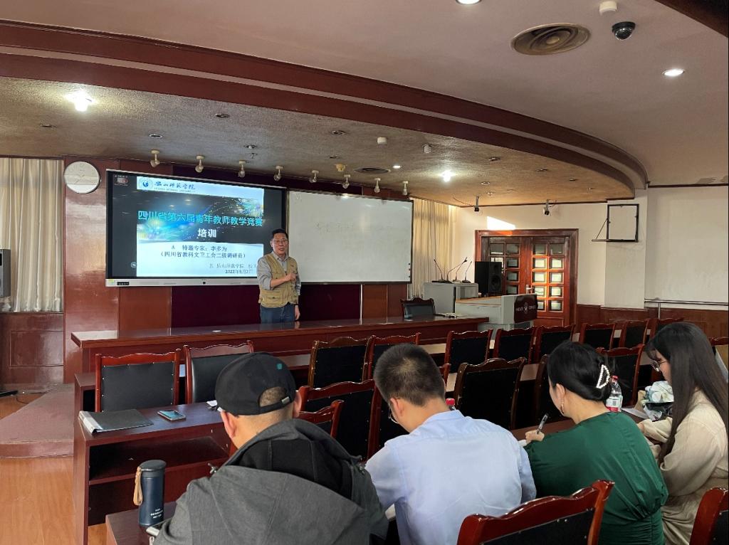 本网讯(文、图/黄宽娜)为深入落实“对标竞进 争创一流”活动主题要求,贯彻落实《关于举办第六届四川省高校青年教师教学竞赛的通知》(川工发【2022】21号)文件精神,4月29日至5月3日,校工会邀请校内、外专家对我校参加第六届四川省高校青年教师教学竞赛预赛的4名选手进行培训。