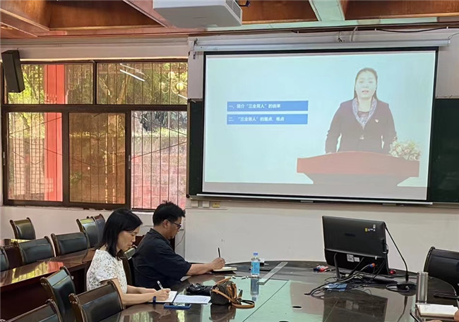 本网讯(文、图/薛文娟)5月6日,旅游学院二级中心组在学院实验楼102教室开展 “三全育人”专题学习,活动由学院党委书记徐秀云主持。