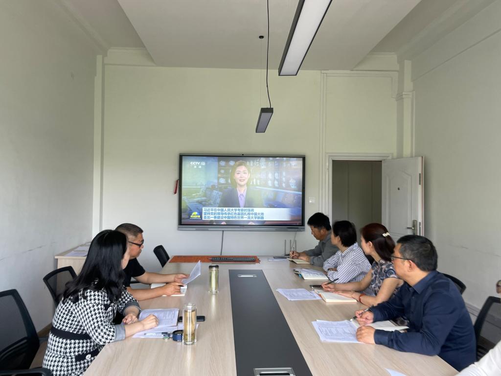 会上,全体中心组成员集中观看了中共中央总书记、国家主席、中央军委主席习近平4月25日到中国人民大学考察调研的视频播报,并认真学习了习近平在中国人民大学考察调研时的重要讲话精神。随后,杨虹传达学习了习近平总书记给中国冰雪健儿重要回信精神。