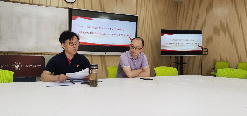 本网讯(文、图/毛敏)5月10日,音乐学院党委理论学习中心组召开专题学习会议,专题学习习近平总书记在中国人民大学考察时的重要讲话精神和上级有关要求,会议由党委书记罗谊恒主持。