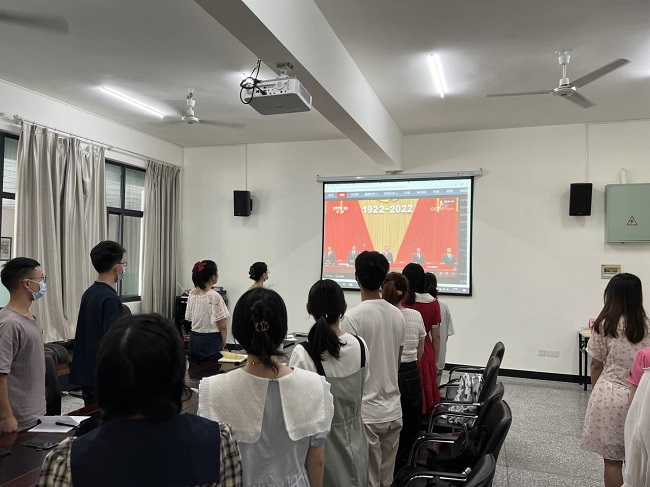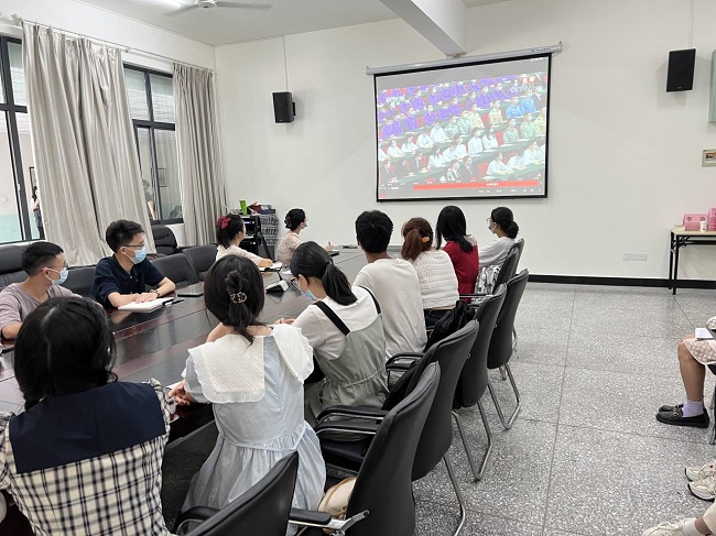 会上,习近平总书记向共青团员、团组织成员致以诚挚祝福和问候,他表示,青年的理想和信念是民族、国家前进的动力,要将小我融入大我。习近平总书记全面回顾一百年来共青团的奋斗历程,强调坚定不移跟党走、为党和人民奋斗是中国共产主义青年团的初心使命;他向青年们提出建议,希望大家从内心深处厚植对党的信赖,创先争优,带头迎难而上,让革命薪火代代相传。在观看的过程中,同学们深刻感知青年之使命,青年之担当。学习结束后,钟永淑老师对大家表达殷切期望,她表示党有号召,团有行动,希望同学们为民族复兴铺路架桥,为祖国建设添砖加瓦。最后,张红丽老师寄语大家脚踏实地,将青春融入奋斗之路,从共青团百年发展史中汲取奋斗力量,成为一名能担当时代重任的青年人。