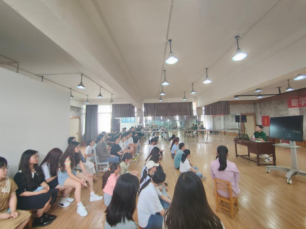 本网讯(文、图/符美玲、罗清、杨林)“讲台是个小舞台,老师也是演员”。文新学院李哲皓老师将讲台看作一个小舞台,老师作为一名角色,从表演学的专业角度对教科学院21级小教2班学生们进行教师教态训练。