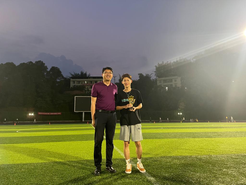 最终,体育学院组冠军归属于体育学院2018级,体育学院2020级及体育学院21级社休联合队分别获得亚军和季军,体育学院2020级徐富贵同学获得本组“金靴奖”,体育学院2018级李希澳同学获得了“最有价值球员奖”;公体组冠军由经管学院+外国语学院队获得,旅游学院+马克思主义学院队及新能源材料与化学学院+法学与公共管理学院队分获本次比赛的亚军及季军,张瑞庆同学获得公体组“金靴奖”、李铭刚同学获得“最有价值球员”奖。赛后体育学院院长张峰、体育学院党委副书记(主持工作)钟大勇、体育学院副院长黄河为获奖队伍及个人颁发了奖项。