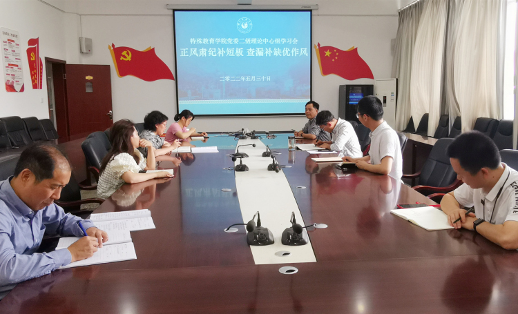 本网讯(文 图/张敏) 5月30日下午,特殊教育学院党委二级理论中心组在学院会议室举行了“正风肃纪补短板 查漏补缺优作风”的学院党风廉政建设“回头看”专题学习会。学习会由学院党委书记刘宗泉主持。