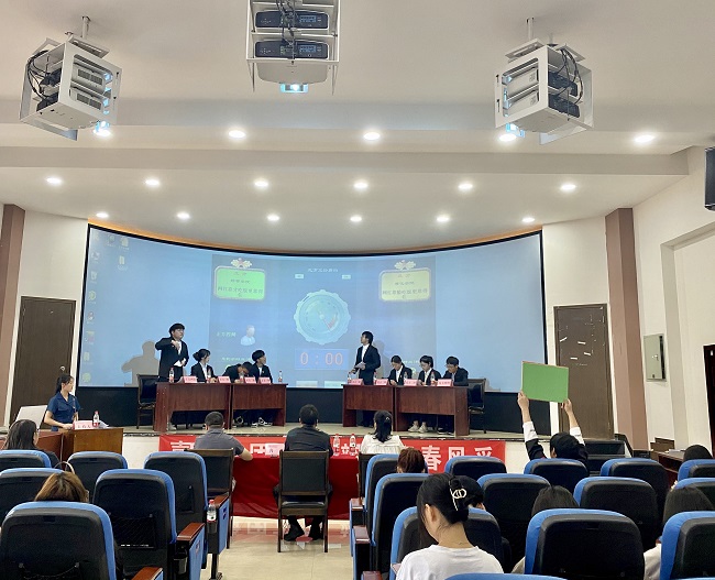 本次比赛以“网红是靠才吃饭还是靠脸吃饭”为辩题。正方经济管理学院所持的观点是:网红靠才吃饭靠得住,反方新能源材料与化学学院所持的观点是:网红靠脸吃饭靠得住。主持人宣布赛制规则后,比赛正式开始。在比赛进行过程中辩手们旁征博引、妙语连珠,结合理论与现实,围绕此次的辩题进行了激烈的论辩,双方针锋相对、互不相让,为大家带来一场有理有据的精彩比赛。经过立论陈词、驳论质询、阶段小结、自由辩论和总结陈词五个环节环环相扣的激战,双方辩手均发挥出高水平的辩论技巧。