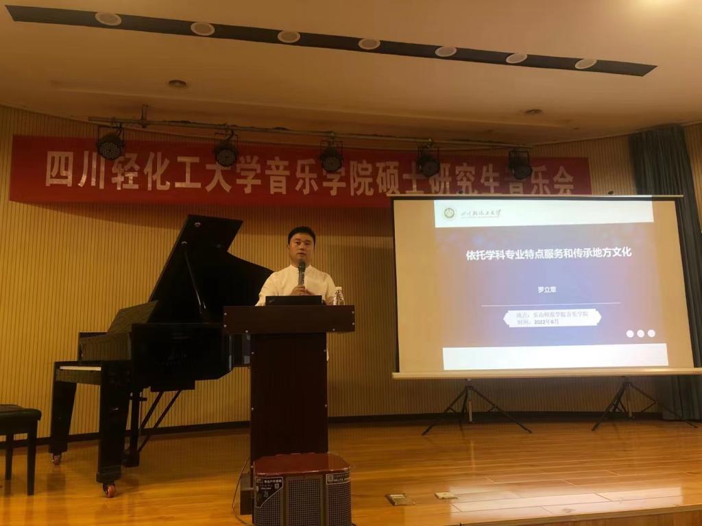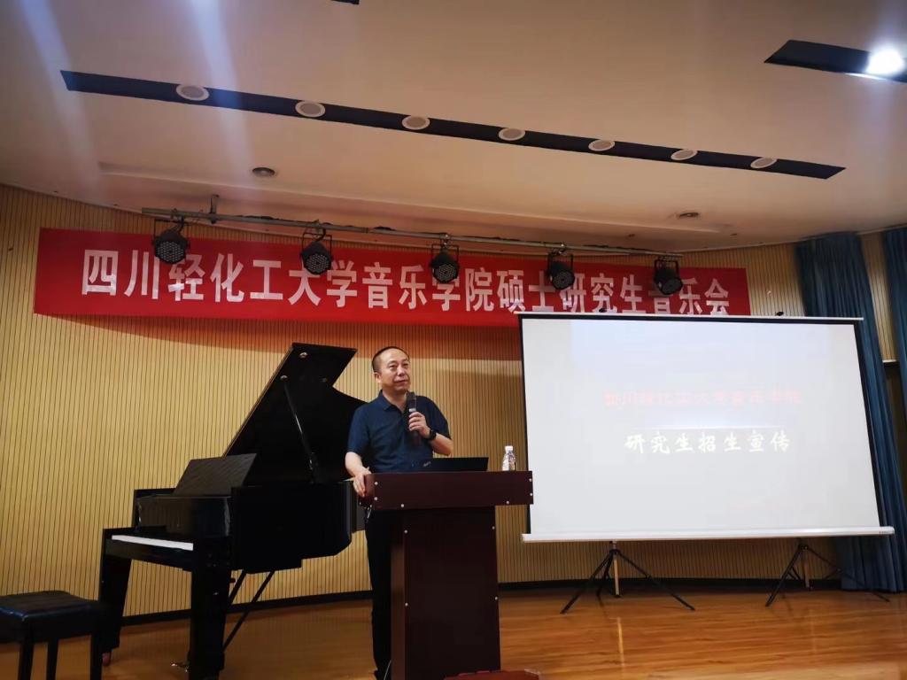 四川轻化工大学音乐学院院长石敦岗进行了研究生招生宣讲,对学院的基本情况进行了介绍。随后由四川轻化工大学音乐学院的硕士研究生们带来了精彩的音乐会演出。“自贡盐场号子”专题讲座在活动中反响强烈,“自贡盐场号子”在2018年被列入第五批省级非遗项目名录。讲座由四川轻化工大学音乐学院副院长罗立章主讲。