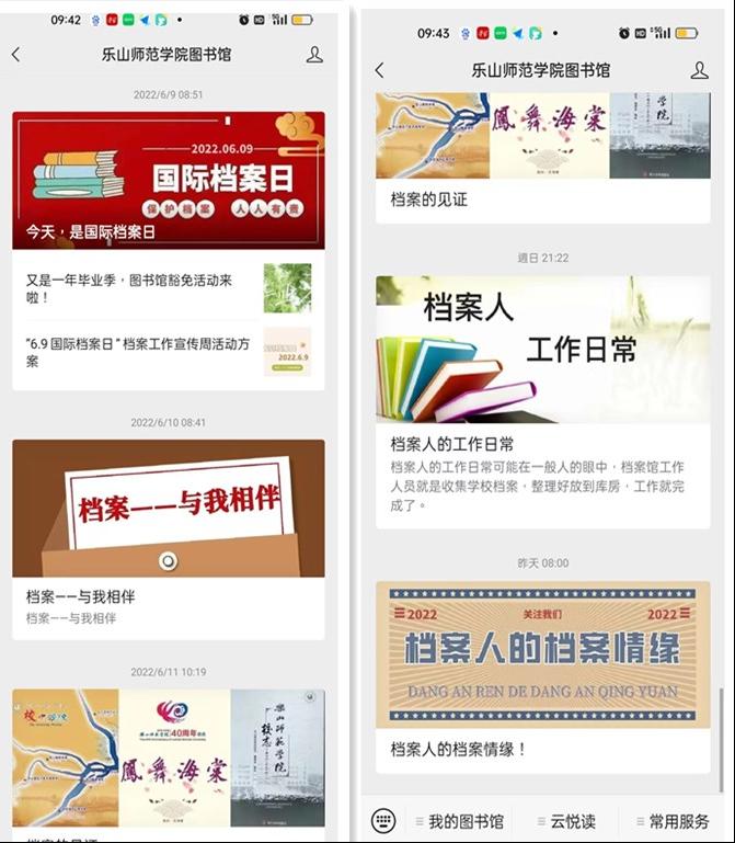 6月9日到13日,针对当今人们阅读习惯,档案馆采取线上宣传方式,在档案馆主页和世界杯葡萄牙vs加纳波胆预测 图书馆公众号(图书馆与档案馆合署办公)发送推文,每天1期,共5期。截至6月14日,档案馆主页的点击量为998次,微信公众号推文阅读量达3256人次,得到了师生高度评价,点赞热烈,达到活动宣传效果,起到了良好的宣传作用。