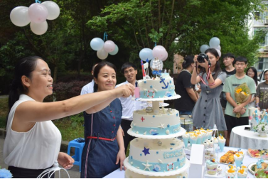 邓健院长与丁敏娜书记共切毕业蛋糕