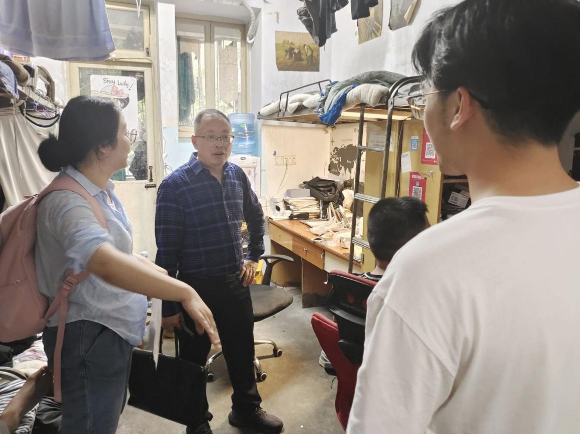 在走访过程中,领导、老师们亲切地与毕业生交谈,详细了解毕业生离校手续办理情况、就业、考研情况以及未来发展规划等,仔细查看了毕业生宿舍卫生、安全状况,提醒叮嘱大家在离校途中,要提高安全防范意识,做好安全防护工作;同时对即将走出校园、步入社会的同学们表示真诚的祝愿,期待大家积极进取,砥砺前行,祝愿大家鹏程万里、前程似锦。