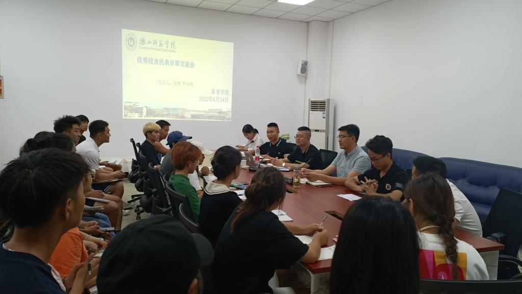 本网讯(文、图/杜小敏)6月24日,体育学院优秀校友经验分享交流会在体育学院会议室召开。体育学院党委书记钟大勇、辅导员关光富、杜小敏、部分学生党员参加了本次活动,本次活动由体育学院党委副书记陈勋玮主持。