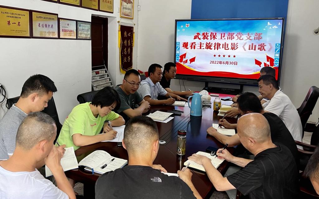 本网讯(文/吴天人 图/薛小丽)6月30日下午,武装保卫部党支部在部门一楼会议室组织支部全体党员及教职工观看了脱贫攻坚、乡村振兴题材主旋律电影《山歌》。