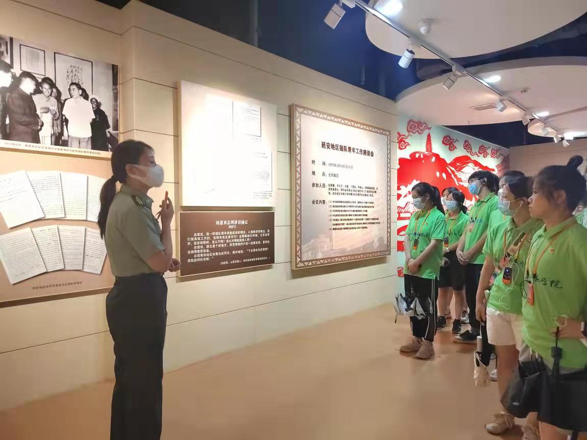 当年,在延安下乡再学习的知识青年多达28000余人,在延安北京知青博物馆,成列着当年知青们留下的一些笔记、书籍、布袋等,同学们深刻感受到他们的勤奋与好学。他们愿意把美丽的青春献给伟大壮丽的共产主义事业。一张张黑白照片,一面又一面写满名字的墙,一件件简陋的农具……无不展现着知青们在当年的奋斗岁月。三楼展厅中呈现了许多知青在返乡后又回到延安,找到之前一起合作的村民的照片,成员们深刻感受到了知青与村民的深厚情谊。