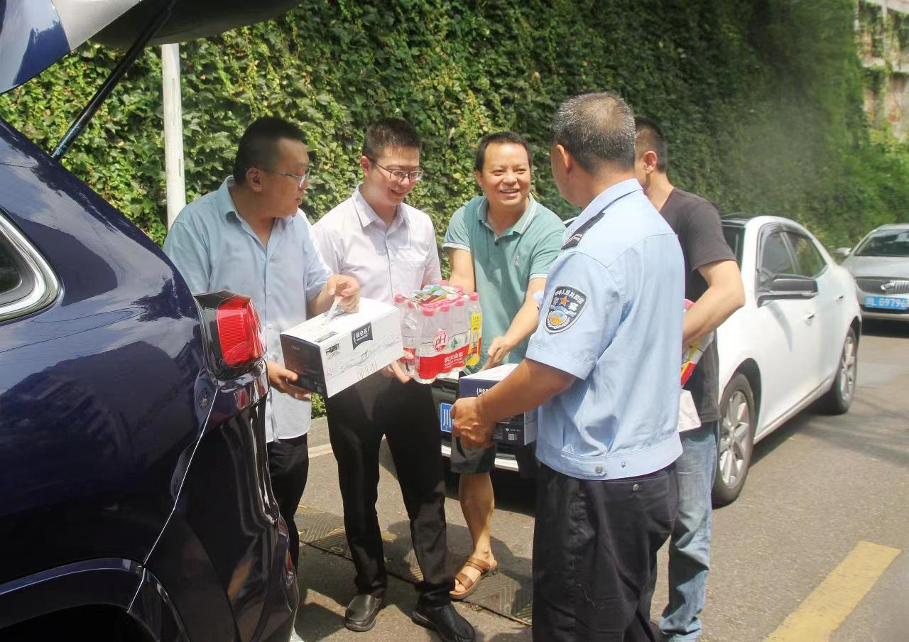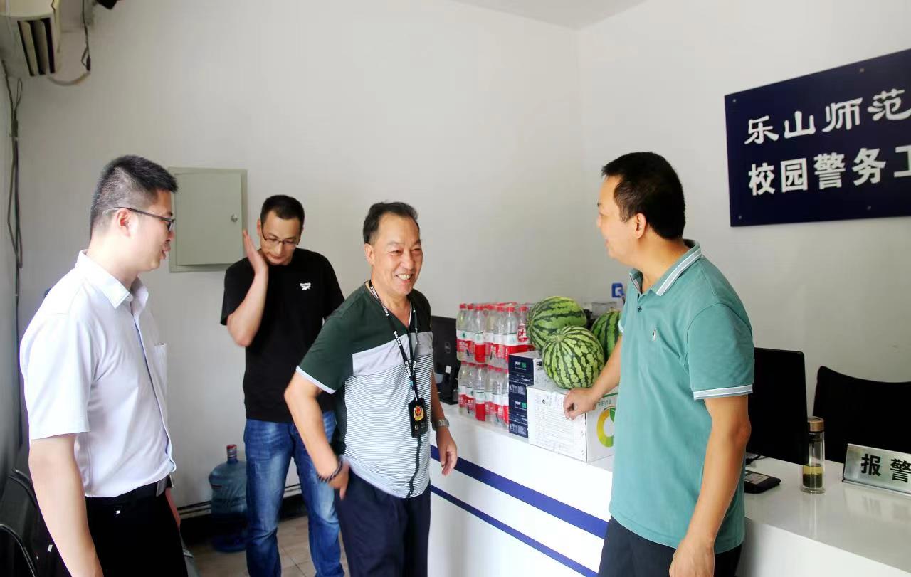 慰问人员一行来到乐山师院南大门、海棠路后校门、北校区旅游学院门值勤点慰问了一线值勤队员,慰问中,梁光德、杨海与一线校卫队员亲切交谈,对大家在高温中坚守岗位、维护校园安全表示衷心感谢和由衷的敬意。每到一处,他们都详细了解暑期值班值守、疫情防控等工作情况,叮嘱大家保重身体,做好防暑降温,最大限度降低酷热天气造成的身体伤害。