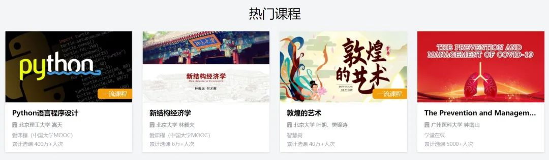 六、同时,下方可搜索具体专业课程,并包含热门课程、专题分类课程等,各大课程平台和国际平台也可以直接点击进入使用