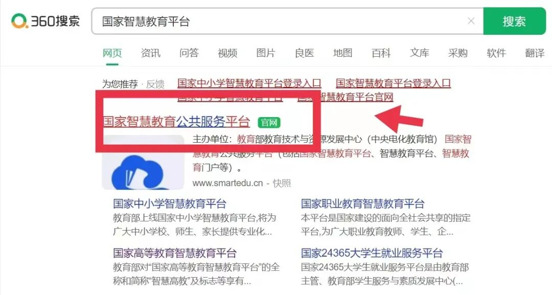 一、搜索“国家智慧教育平台”,选择带有官网标识的网站并点击进入