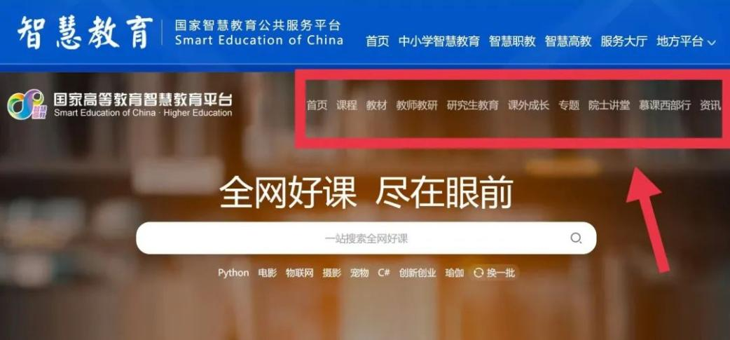 五、进入四川高等教育智慧教育平台后,可在首页选择相对应的栏目,或直接在引擎中搜索好课