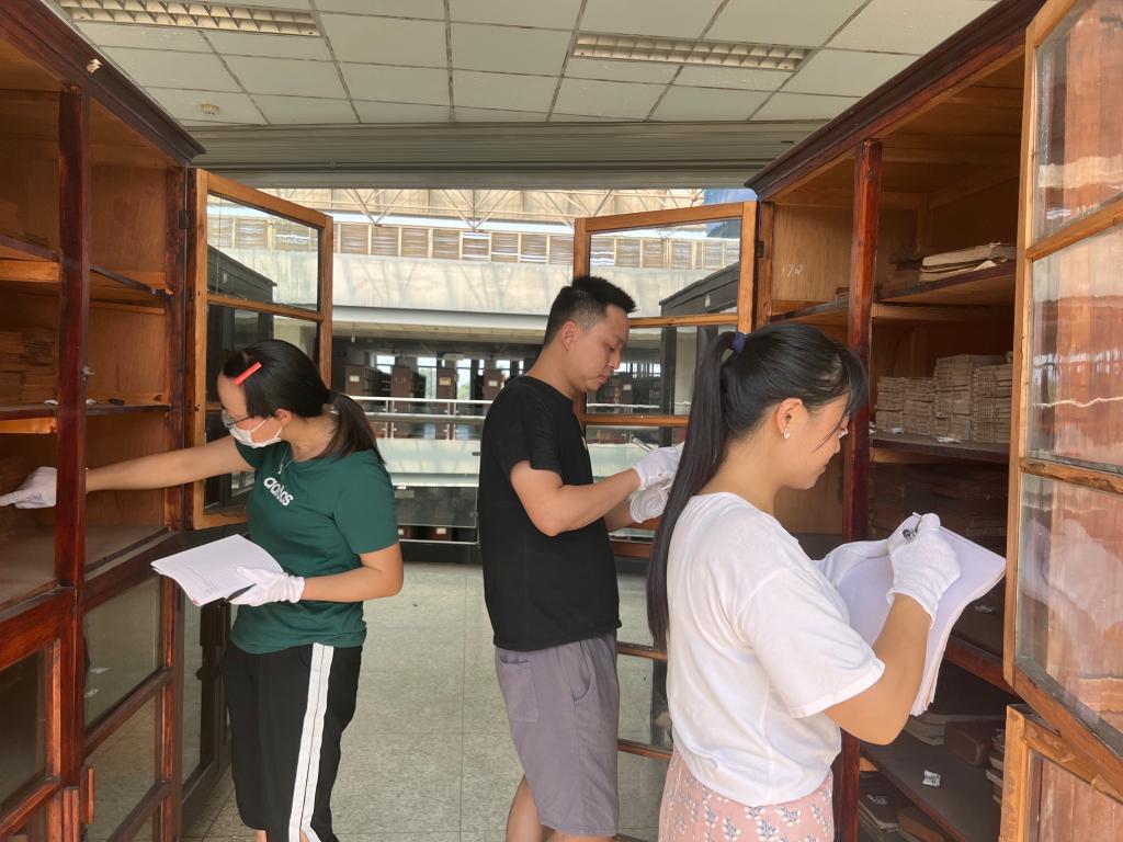 本网讯(文/图 蔡小筱)为传承中华传统文化,保护卡塔尔世界杯决赛波胆预测 古籍文化遗产,根据四川省文化和旅游厅、四川省财政厅《关于组织申报2022年汉文古籍普查古籍修复专项资金项目的通知》精神,8月17日至8月18日,在图书馆、档案馆馆长钟英的带领下,黄春英和蔡小筱组成团队,开展了对图书馆和校史馆馆藏古籍清查盘点和损害鉴定工作。