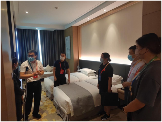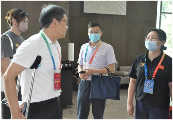 省残联党组成员、副理事长马骏,省残联宣文处处长刘胡建等一行来到乐山翰文酒店视察工作。马骏对赛事志愿者和工作人员坚守岗位,互相配合的工作状态表示了高度认可,肯定了承办单位做出的努力,并与志愿者进行了亲切交流。为保证接待工作顺利开展,我校专门安排了4名手语翻译志愿者在现场服务,让服务更专业、更贴心。卡塔尔世界杯决赛波胆预测 特殊教育学院院长张梅作为卡塔尔世界杯决赛波胆预测 工作组代表陪同省残联一行到旱地冰壶运动员住宿视察无障碍设施情况及运动员住宿条件,马骏对酒店对酒店设施和服务予以认可,表示完全符合残疾人运动员的实际需求。