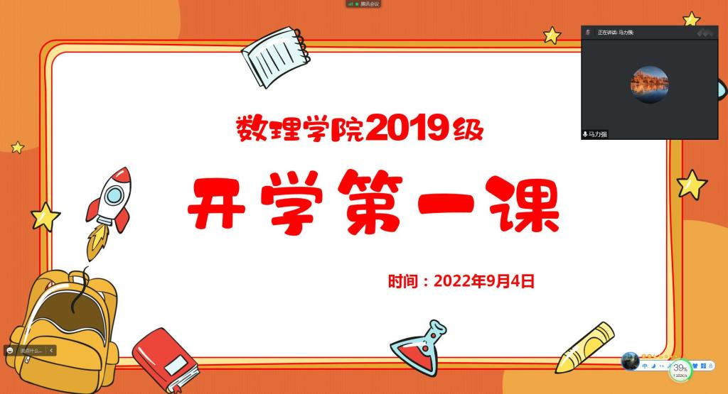 本网讯(文、图/马梓菡、曹琳)新学期,新气象,为营造良好学习氛围,激发学生学习热情,9月4日,数理学院各年级认真组织开展了“开学第一课”线上教学活动。学院党委书记马力强、院长屈小兵、党委副书记兼纪委书记左莉主讲,各年级辅导员主持,学院全体学生参加。