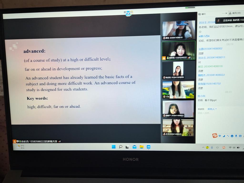 据了解,开学前,外国语学院制定了详实的线上教学计划,分三批次召开行政人员、大学外语、专业外语教职工大会,落实了线上教学准备、线上教学要求、线上教学纪律要求和线上教学质量监控等内容,确保新学期线上教学有序开展。