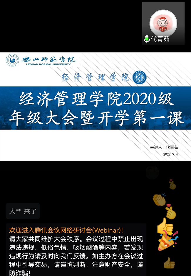 本网讯(文/敬雨霏)受四川新一轮疫情影响,原定开学时间延缓,9月5日,全校师生将开启新学期的线上教学,在正式上课前,各年级辅导员老师通过线上会议的形式跟同学们来了一次线上交流,并开展了学前的“第一课”教育。