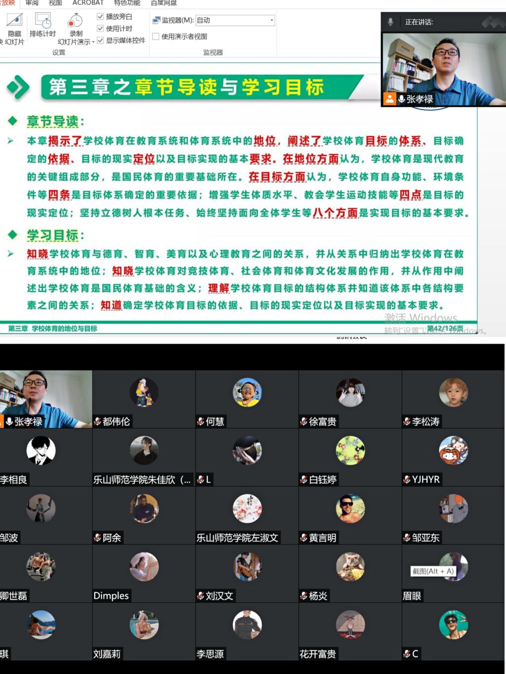 在学院工作的有序部署下,体教理论教研室三天的网络课程进展顺利。本次网络课程的实施既实现了学院师生在线课程培训全覆盖,也促进了体教理论课程信息化的建设,为抗击疫情同时提供教学保障。