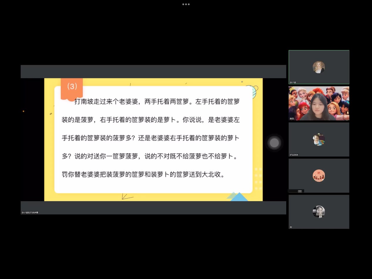 在课堂活动中,晨希“云”推普团队成员徐子媗带领孩子们先进行“反口令”“小小收银员”等破冰小游戏,拉近与同学们的距离;紧接着,开展普通话口语训练,指导孩子们练习绕口令,同时对孩子们普通话发音进行指导。之后让孩子们开麦尝试独立对绕口令进行朗读,让孩子们在实践中真正体验到普通话的独特魅力,达到寓教于乐的效果。