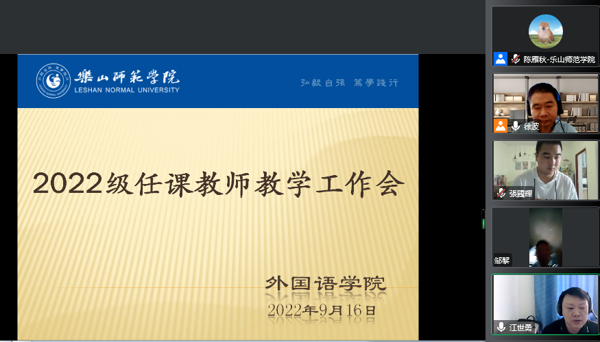 本网讯(文、图/景爱民)9月16日上午9:00,外国语学院通过腾讯会议举行了2022级任课教师线上教学工作会。学院主持工作副院长江世勇、副院长徐波以及承担2022级课程的任课教师参会,会议由徐波主持。