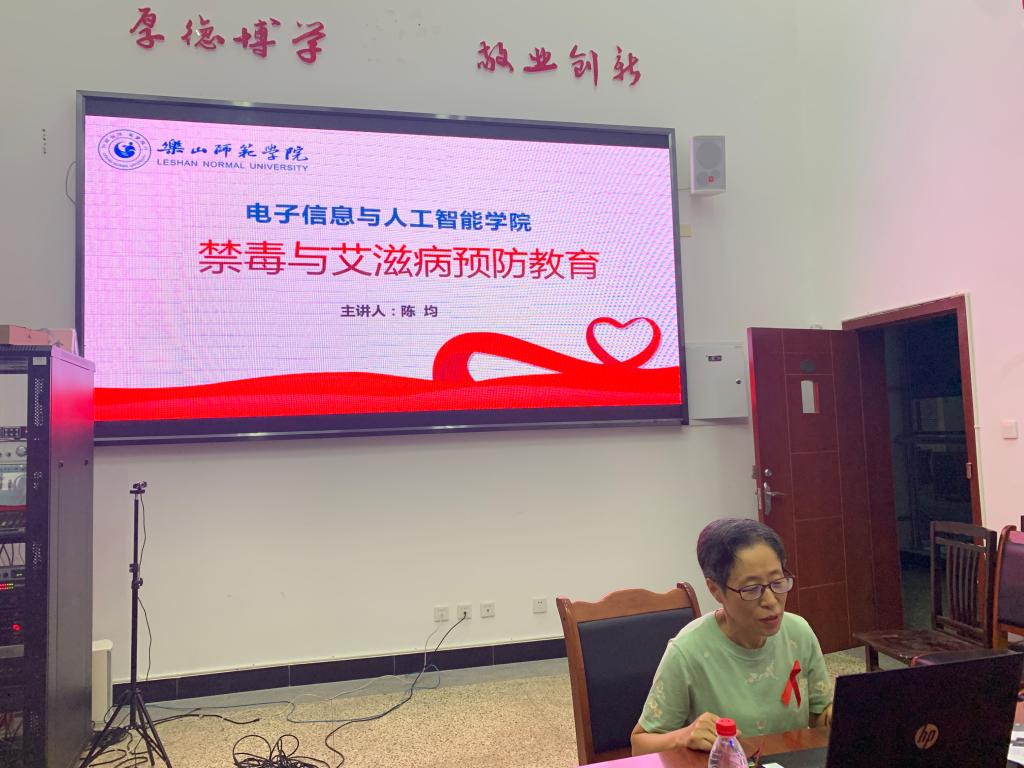 本次活动采取线上和线下相结合的方式进行。在活动中,陈均首先向学生们介绍了艾滋病的病因以及三种传播途径:血液传播、性接触传播、母婴传播,强调性传播是人类感染艾滋病的一种主要传播途径。其次,陈均向学生们科普了正确预防艾滋病的方法,让学生们认识到养成良好的生活习惯是预防艾滋病的重要环节。此外,陈均向学生们着重讲解了毒品的危害以及毒品预防知识。
