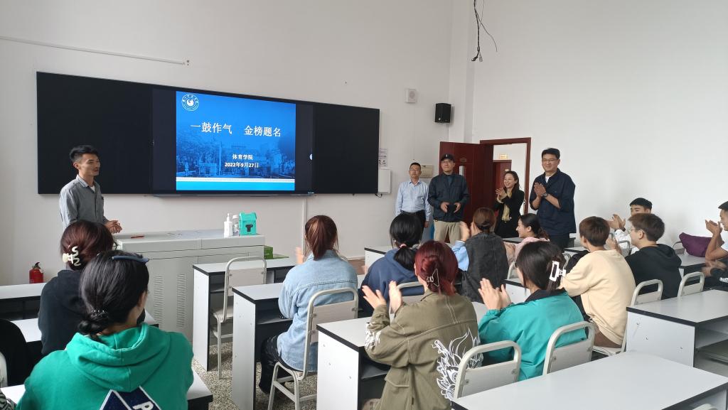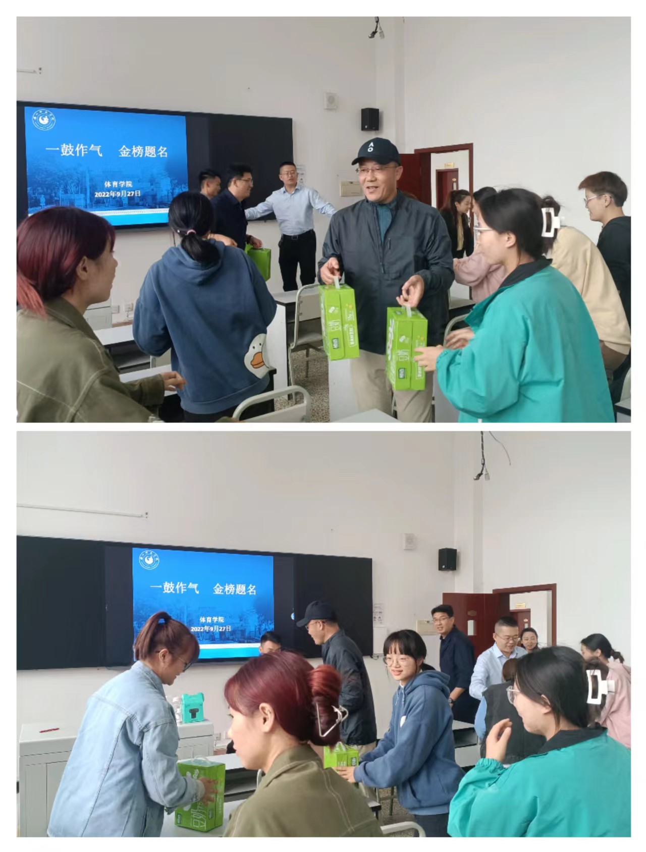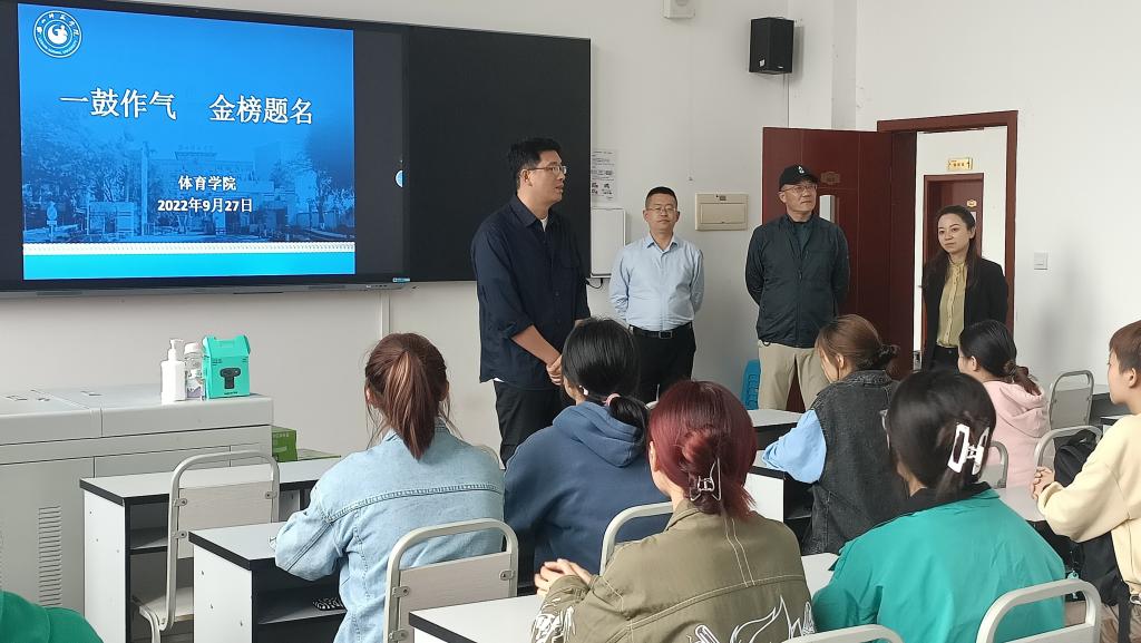 本网讯(文、图罗治钧)为鼓舞考生士气,增强考生信心。体育学院在特教楼303教室对2023届留校复习的考研学子进行了慰问,体育学院院长张峰、党委书记钟大勇、党委副书记陈勋玮、副院长黄河和17名考研同学参加了此次慰问,此次慰问由学生科长关光富老师主持。