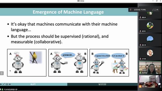 由于疫情的原因,本次报告通过腾讯会议在线进行,电子信息与人工智能学院师生在特教C501会议室和线上共同参加了本次报告会。参加本次会议的还有部分22级的新生。
