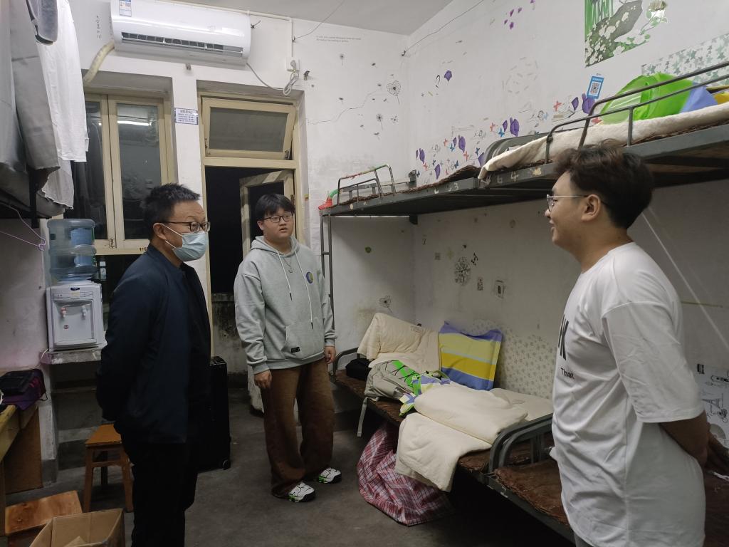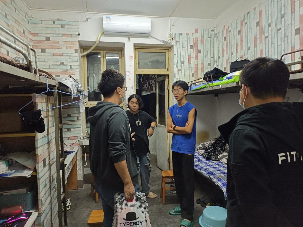 离开新生寝室后,学院领导还看望正在寝室隔离的学生,周特古斯详细询问了隔离的状况,了解学生需求,送去防疫物资、午餐。叮嘱同学们:疫情让我们隔着一墙的距离,但隔不断的是老师们的关切和牵挂。不要放松学习,积极调整状态,减轻心理压力。
