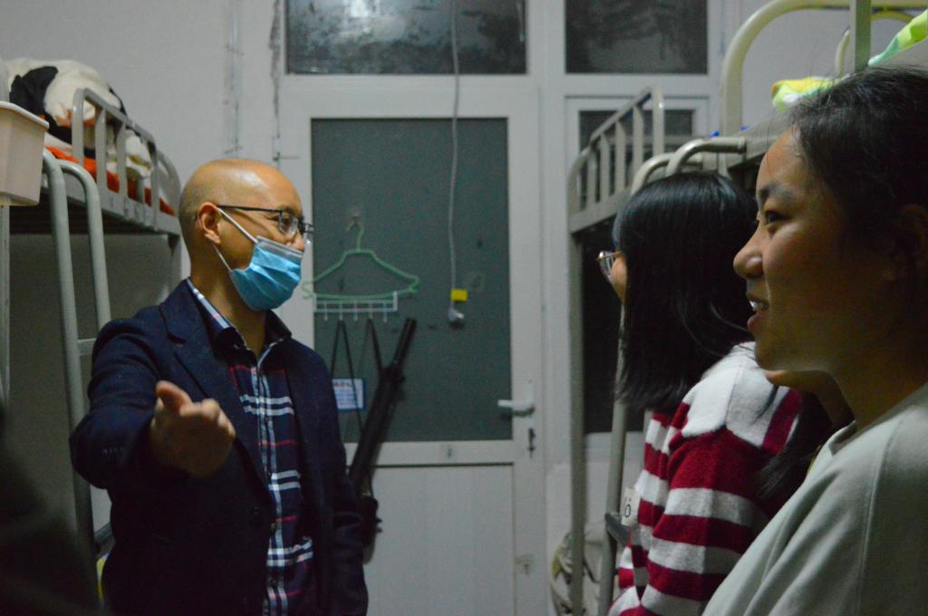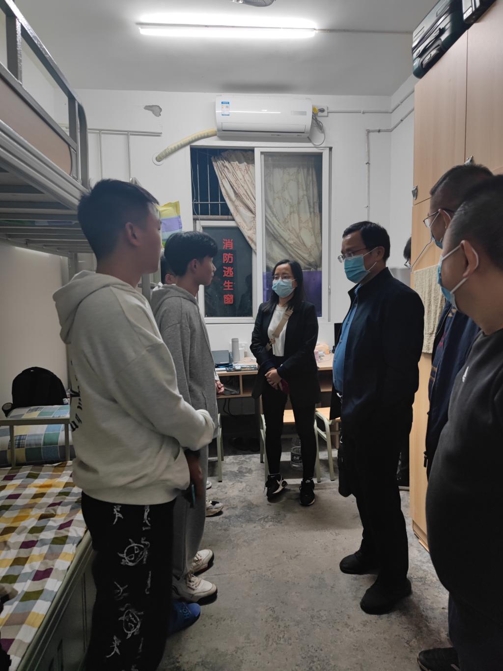 11日晚,马力强、屈小兵带领学院班子成员、辅导员和代班一行,分别前往学7幢、学12幢、新3幢、学5幢等学生公寓看望新生,了解新生入住宿舍的状况及生活、环境的适应情况,以及同学们当前遇到的困难或问题。所到之处,学院领导和老师们就上网课情况、环境适应情况等与新生作了耐心细致地交流;就新生入校的相关安全意识作了温馨提示;就同学之间该如何相处、如何养成健康的生活方式和学习习惯提了相关建议。最后,老师们还鼓励新生要确定好个人目标,刻苦学习,增加知识储备量,打好基础,为将来考研和就业做好充分准备。