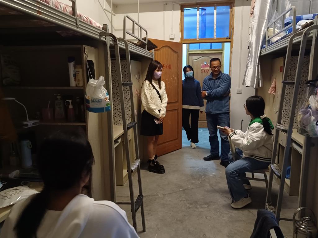 本网讯(文/杨兵、图/郑佳俊)帮助新同学更快适应新学期生活,减轻离家的顾虑,增强对学院的理解,10月11日晚,法学与公共管理学院开展新生寝室走访活动。学院党委书记程勇、院长苏祥、副院长刘克稳、赵勇、学生科长杨兵、教学管理科科长张晴、辅导员记何叶、刘佳佳、许若星以及学生干部等对新生寝室进行了走访慰问。