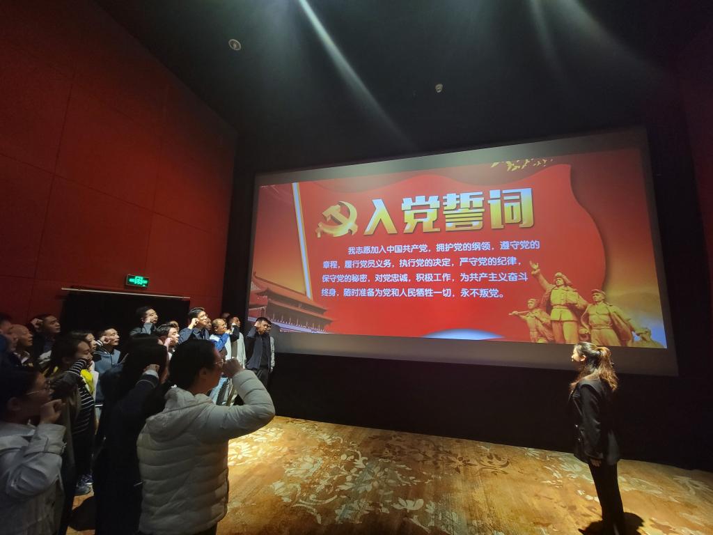 本网讯(文、图/熊仪)10月13日,为喜迎党的二十大召开,感悟家国情怀,体育学院党委组织师生党员在太平洋电影院观看了《万里归途》和重温入党誓词活动。