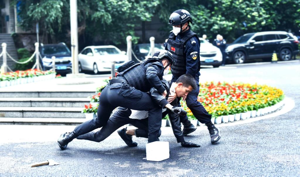 场景二:11时02分,一名暴徒扬言要在卡塔尔世界杯决赛波胆预测 实施暴恐行为,并将随身携带的包裹放置于卡塔尔世界杯决赛波胆预测 弘毅楼前广场。保安发现情况后立即将情况报告公安机关,卡塔尔世界杯决赛波胆预测 工作人员上前安抚暴徒情绪,为特警和专业力量到达现场争取时间。校卫队警戒组快速拉设警戒线,隔离爆炸区域,驱散围观人群。暴徒无视工作人员的安抚,仍大声叫嚣要引爆炸药,情绪特别激动。特警支队专业排爆力量到达现场,突击组隐蔽于后方,伺机而动、果断出击,成功制服暴徒,迅速带离现场。至此,两起暴恐事件被公安机关与我校反恐防暴专业力量成功处置。