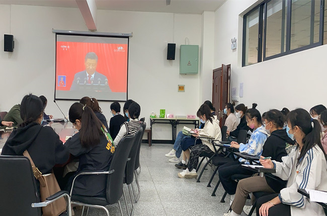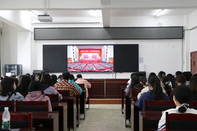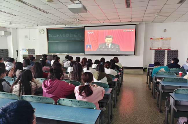 党的二十大是我们党在全党全国各族人民迈上全面建设社会主义现代化国家新征程、向第二个百年奋斗目标进军的关键时刻召开的一次十分重要的大会,是全党全国各族人民政治生活中的一件大事。全校同学认真学习二十大报告,把握十九大以来建设成就和国家未来发展蓝图,并就报告中的新提法、新思想进行探讨和交流,深刻领会报告内涵与意义。在观看直播现场,同学们边看边做好记录,不时以热烈的掌声回应大会精彩报告。