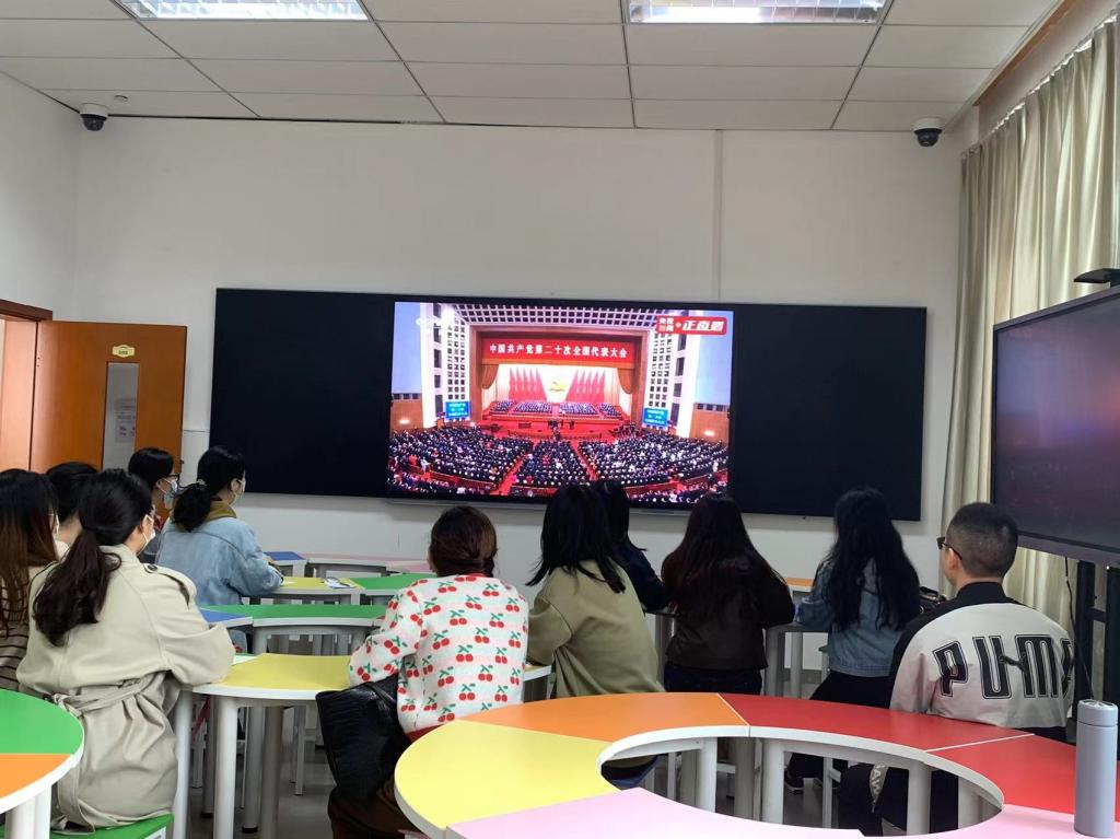 (文/黄悦、图/王让)2022年10月16日上午,学科建设与发展规划处组织在校联合培养研究生在特教大楼D幢502,收看了中国共产党第二十次全国代表大会开幕会直播盛况,同学们认真聆听了习近平总书记代表第十九届中央委员会向大会作的题为《高举中国特色社会主义伟大旗帜为全面建设社会主义现代化国家而团结奋斗》的报告。参与收看的学生对党的二十大胜利召开反响热烈,对党和国家事业取得历史性成就、发生历史性变革欢欣鼓舞,对党的二十大描绘的未来发展宏伟蓝图倍感振奋。