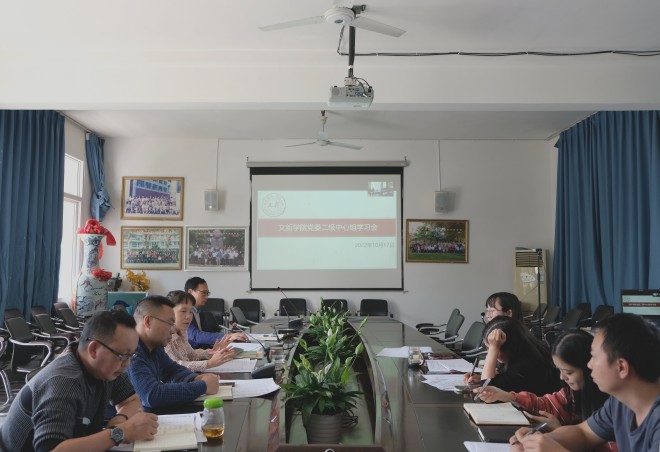 本网讯(文/吴雨洁 图/宋美)10月17日下午,文新学院党委书记彭杨主持召开文新学院二级中心组学习会,专题学习研讨党的二十大报告。学院党委、纪委全体成员参加会议。