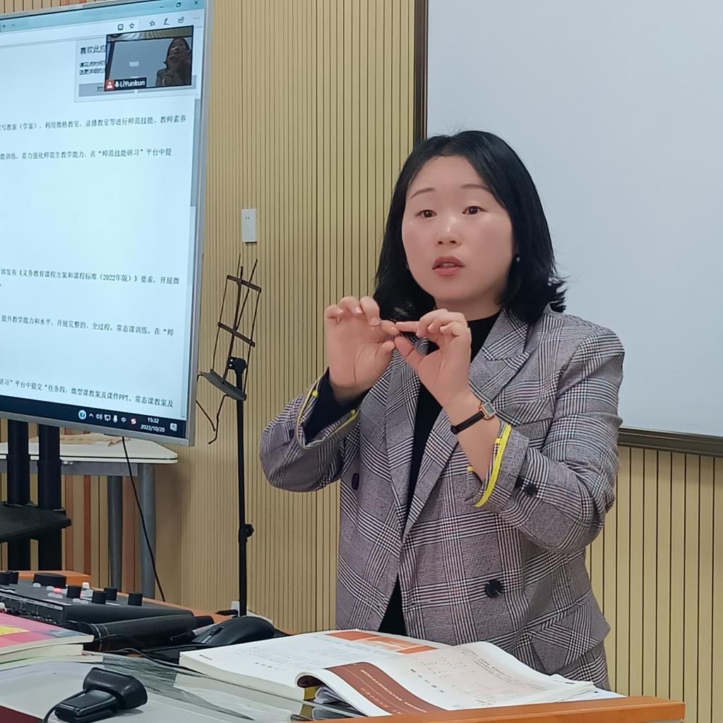 刘红谈到,优秀的音乐教师一定要具备基本素养及专业素养,应当灵活运用自己所学到的知识用之于课堂。课程的设计一定要精简有趣,板书一定要体现课程的重点内容。刘红与同学们进行了深刻的交流,并对大家提出的问题做出了详细的解答。在微课指导环节中,刘红给大家做了精心的指导,并在讲座的最后给同学们提出了宝贵的意见。
