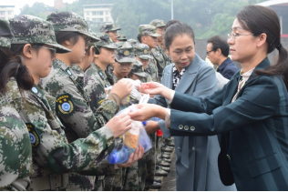 慰问活动中,郭晓黎向新生进行慰问,她谈到,军训能够增加同学们之间的感情,是深入地了解彼此的好时机,使今后的大学生活能够相处愉快,同时,军训能够强身健体,祝愿大家身体健康,收获颇丰。邓健对大家寄予了期望,她希望大家能够在艰苦的军训中磨炼意志,不论是在今后的学习中还是为了中华民族伟大复兴都要时刻做好准备,并期待大家在30日的汇报表演中展示出经济管理学院的风采。