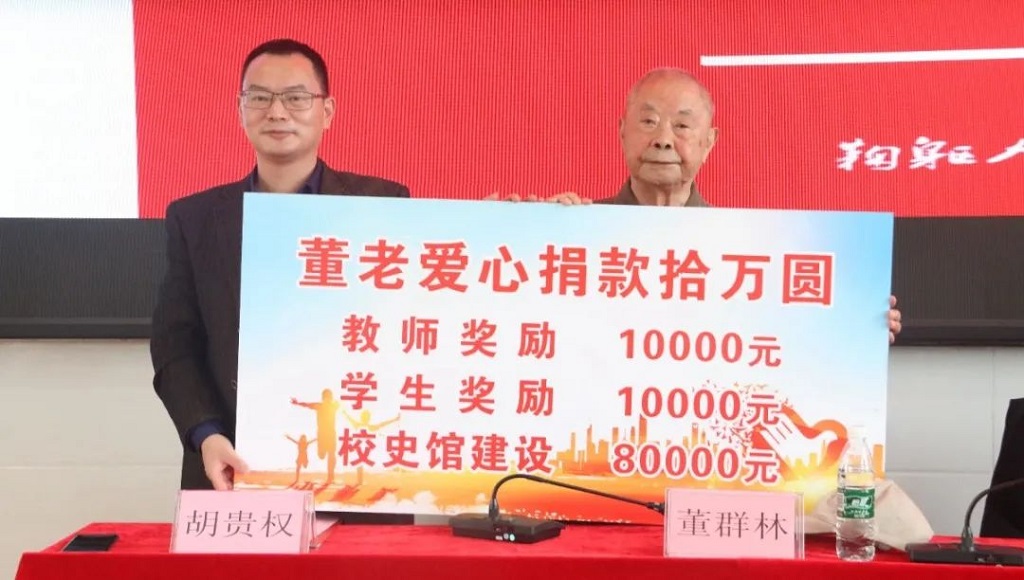 我校离休干部董群林同志曾是马边二区中学(荍坝中学)首任校长,也曾是马边中学的校长、马边县副县长,一直关注着马边、马边教育。在第二个100年的奋进征程中,董老高风亮节、以身作则,用实际行动践行着为党的教育事业奋斗终生的承诺。