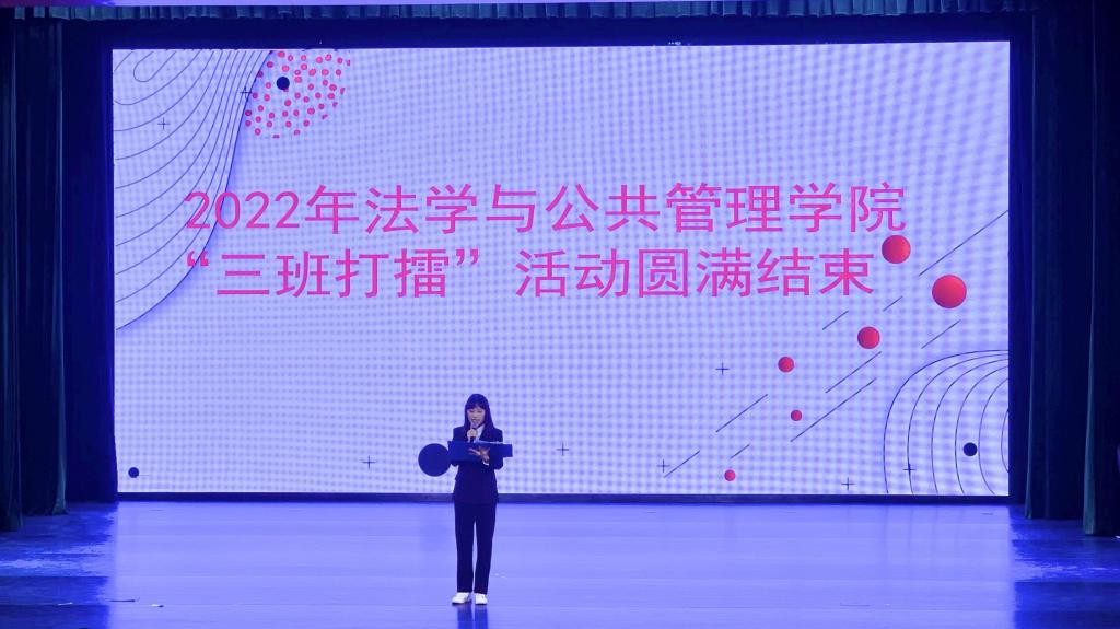 本网讯(文/刘佳佳 图/李静怡、叶烩)为弘扬良好班风、展示班级精神面貌和建设良好学风环境,11月3日下午3点法学与公共管理学院于实训楼多功能厅举行“三班打擂”活动。法管学院党委书记程勇、副院长刘克稳、以及部分辅导员、班主任和22级全体新生到场参与本次活动。