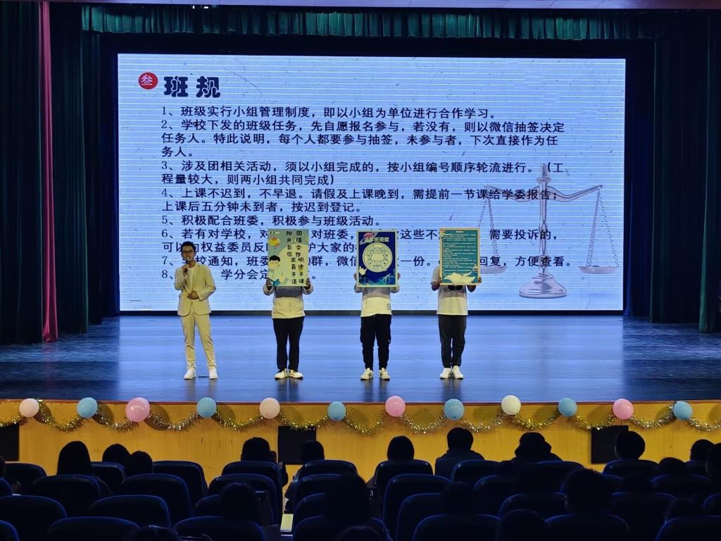 活动伊始,由法管学院舞蹈班进行暖场节目,之后主持人介绍评委及比赛规则。2022级六个新生班级逐一上台介绍其“班徽、班规、班训”,同时展示了精彩的节目。养老服务管理班原创情景剧表演《被时间遗忘的老人》呼吁我们关怀老年人,让他们更好的融入现代社会;法学班《我爱你中国》表达了他们浓浓的爱国情怀;行管二班《少年》激励我们奋勇向前,畅想未来。最终22级社工一班、养老服务管理班、行管二班分别获得此次活动的最佳风采奖、优秀创建奖以及最具创意奖,学生科长杨兵为获奖班级颁发奖项。